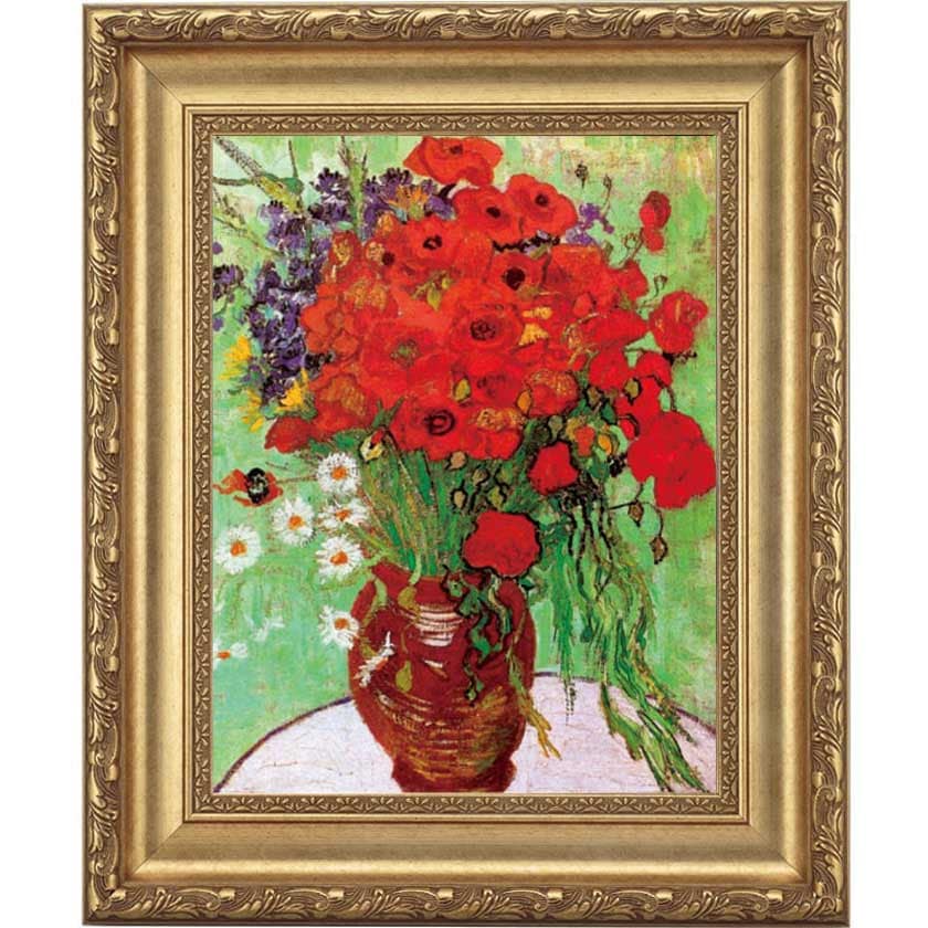 『赤いポピーとデイジー』 ゴッホ 4号 立体複製名画 額装付 【ポイント5%還元中】 ポスト印象派 新印象派 19世紀