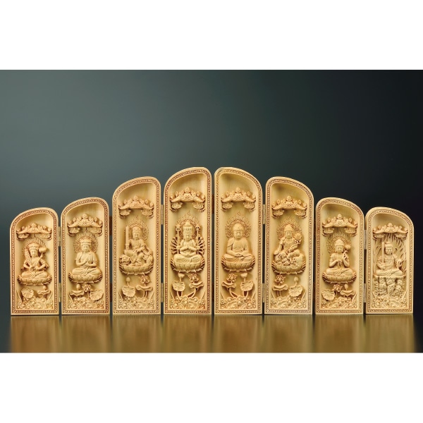 本黄楊細密彫懐中仏 金彩阿弥陀三尊 仏像【ポイント5%還元中】