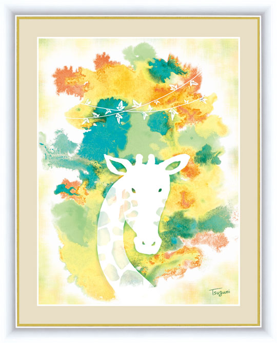 『きりん』 木下 つぐみ(きのした つぐみ) F4号 複製名画 動物 額装付【ポイント5%還元中】