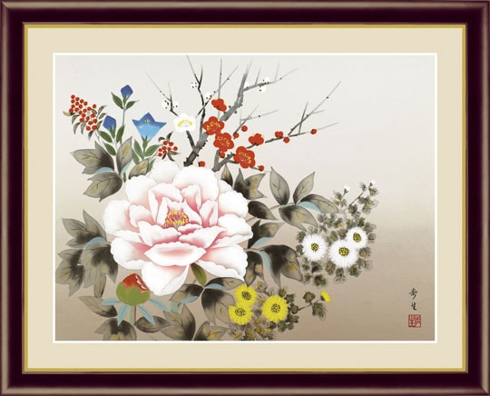 『四季花』 北山歩生 F4号 複製名画 花鳥画 額装付【ポイント5%還元中】