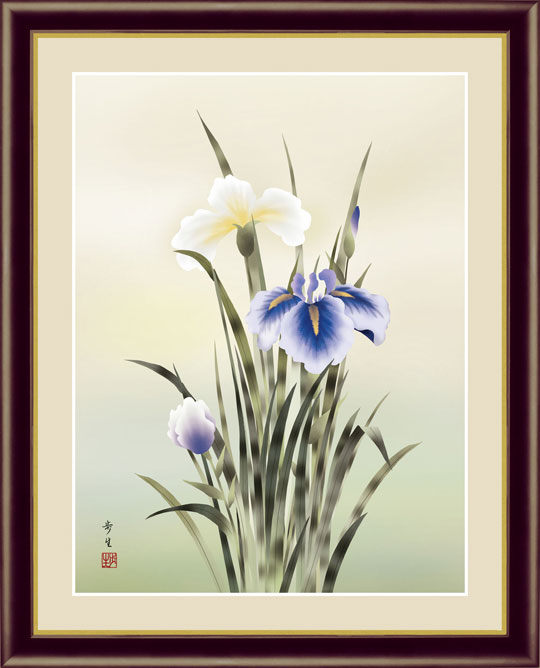 『菖蒲』 北山歩生 F4号 複製名画 花鳥画 額装付【ポイント5%還元中】