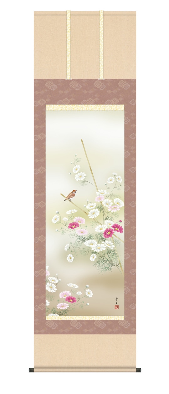 『秋桜』 北山歩生 洛彩緞子本表装 掛軸 複製名画花鳥画【ポイント5%還元中】