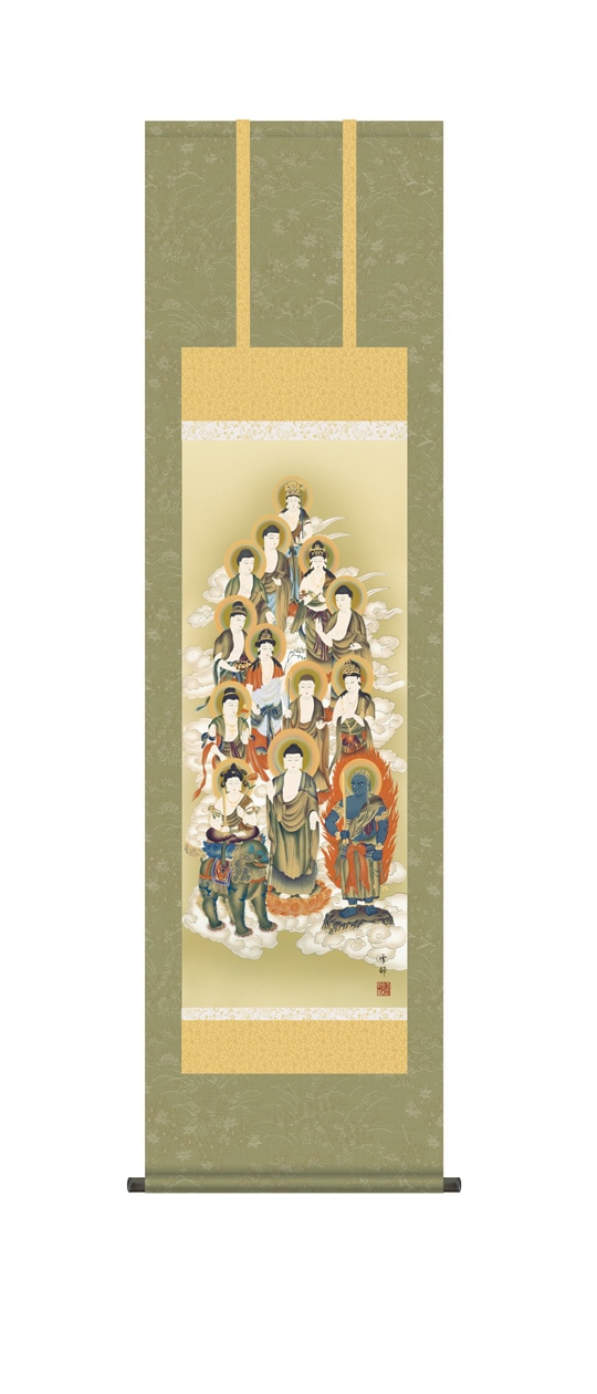 『十三佛』 清水雲峰 洛彩緞子丸表装 掛軸 複製名画 宗教 仏画【ポイント5%還元中】