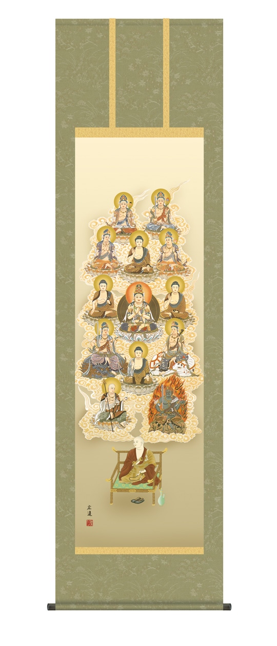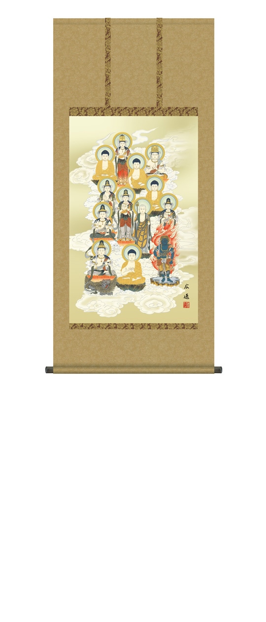 『十三佛』 田中広遠 洛彩緞子丸表装 掛軸 複製名画 宗教 仏画【ポイント5%還元中】