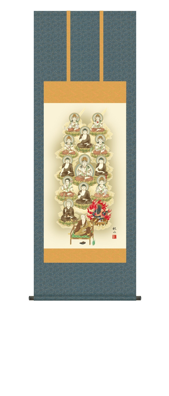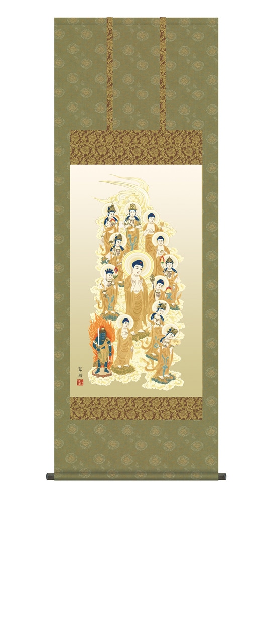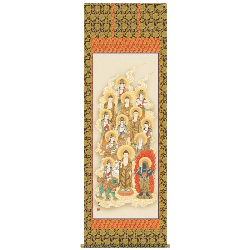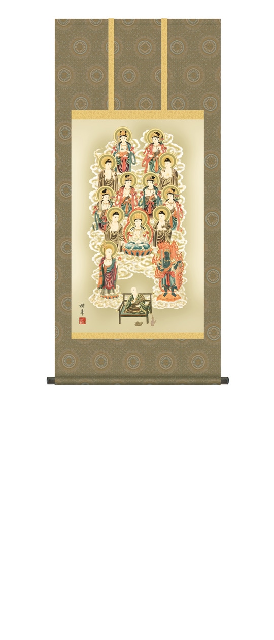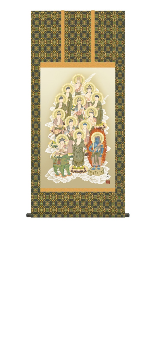 『十三佛』 鈴木翠朋 洛彩緞子佛表装 掛軸 複製名画 宗教 仏画【ポイント5%還元中】