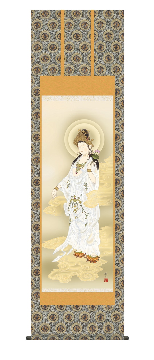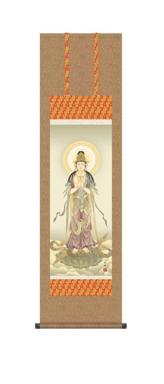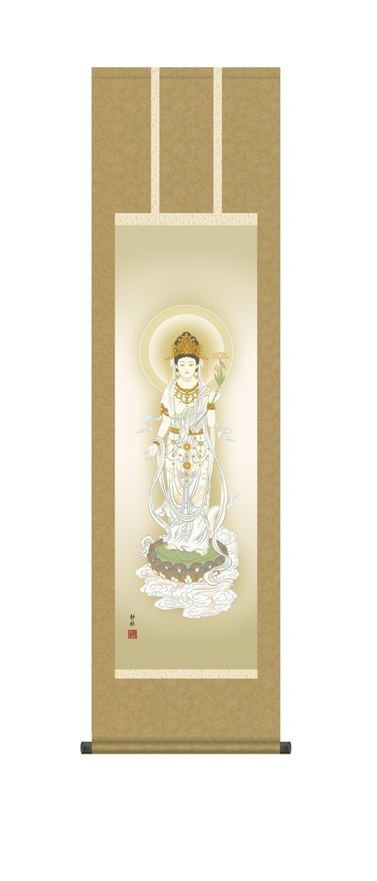 『聖観音』 鈴木翠朋 洛彩緞子佛表装 掛軸 複製名画 宗教 仏画【ポイント5%還元中】