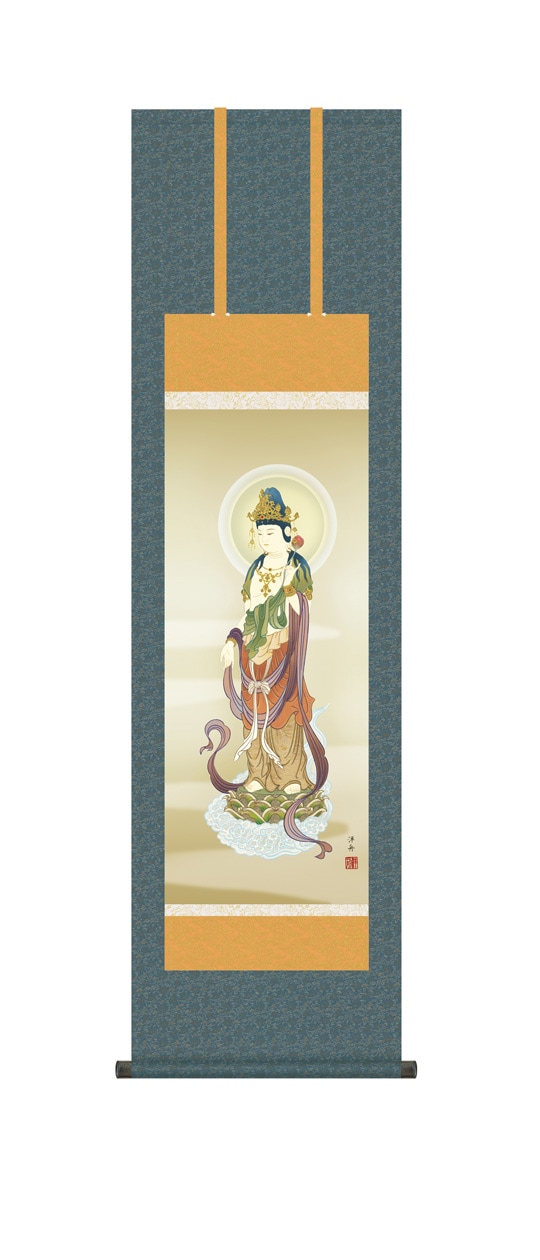 『雲上観音』 小野洋舟 洛彩緞子佛表装 掛軸 複製名画 宗教 仏画【ポイント5%還元中】