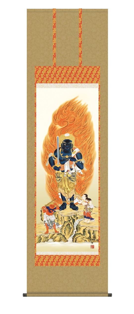『不動明王』 田村竹世 洛彩緞子佛表装 掛軸 複製名画 宗教 仏画【ポイント5%還元中】