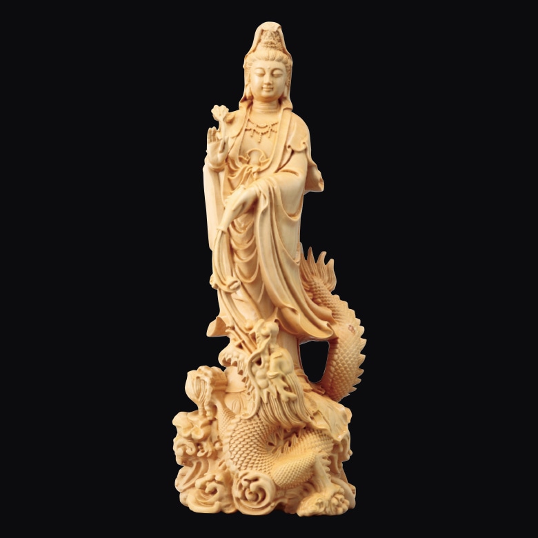 『龍上観音』 長江桂舟 洛彩緞子丸表装 掛軸 複製名画 宗教 仏画【ポイント5%還元中】