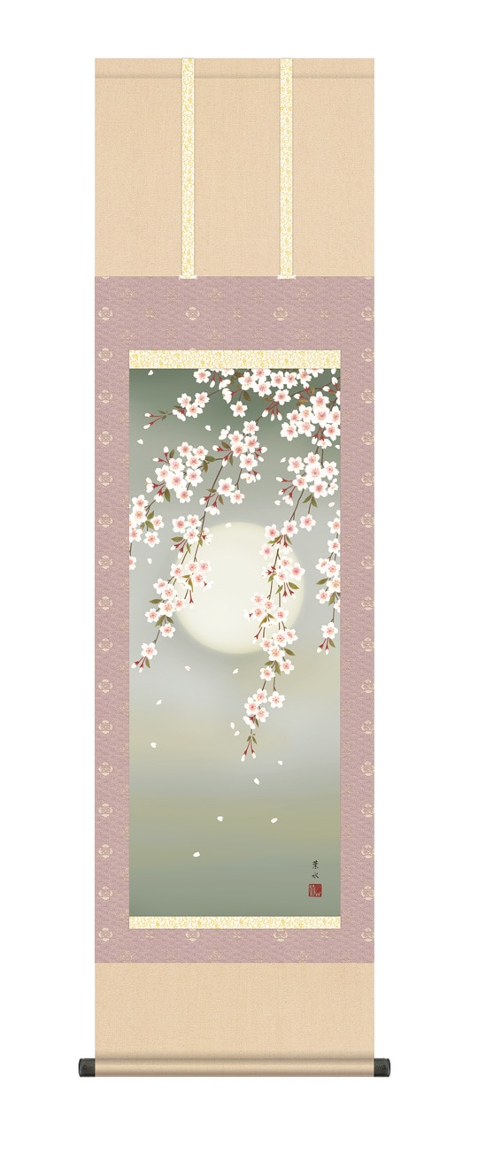 『夜桜』 清水玄澄 洛彩緞子本表装 掛軸 複製名画 花鳥画【ポイント5%還元中】