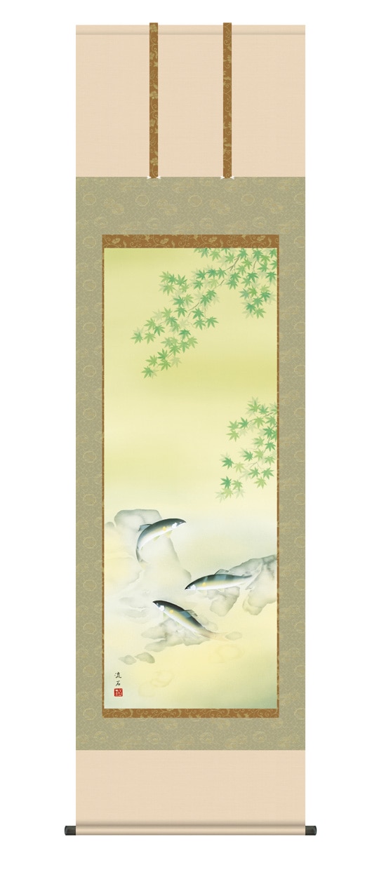 『楓に鮎』 北山歩生 洛彩緞子本表装 掛軸 複製名画花鳥画【ポイント5%還元中】
