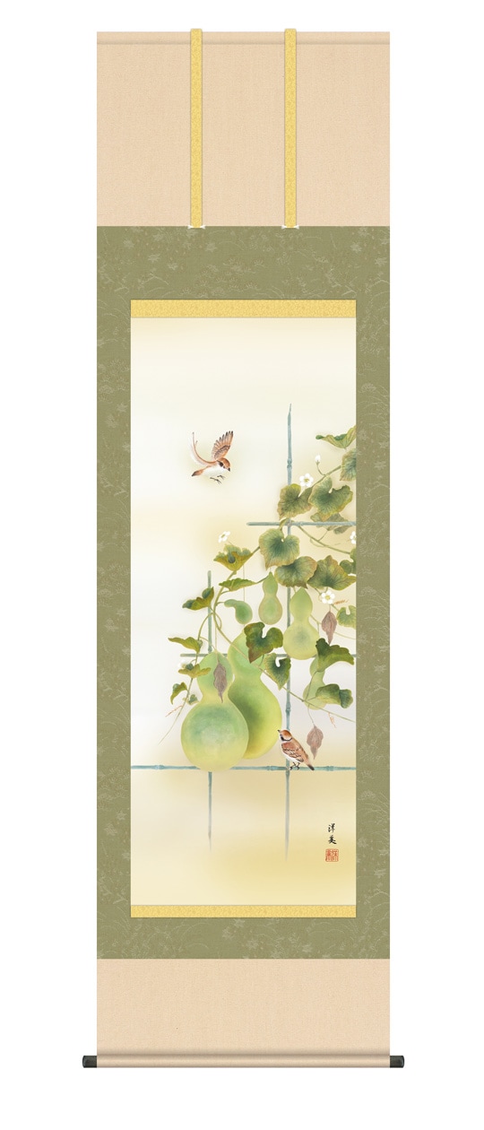 『六瓢』 上村洋美 洛彩緞子本表装 掛軸 複製名画 花鳥画【ポイント5%還元中】