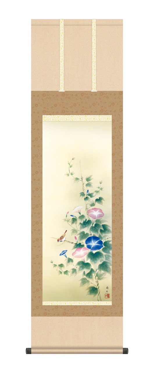 『朝顔』 田村竹世 洛彩緞子本表装 掛軸 複製名画 花鳥画【ポイント5%還元中】