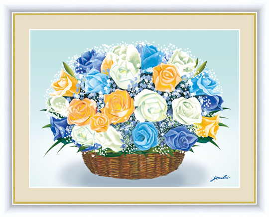 『爽やかなブルーのブーケ』 洋 美(ようび) F4号 複製名画 花鳥 額装付【ポイント5%還元中】
