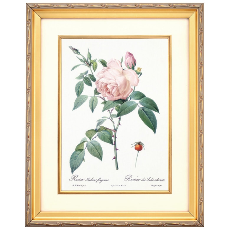 『ロサ インディカ フラグランス』(「バラ図譜」より) ルドゥーテ 立体複製名画 額装付 植物画 博物画 19世紀 国立自然史博物館(パリ) インテリア 絵画