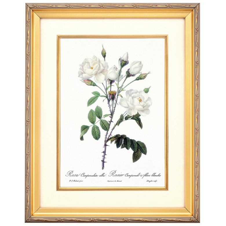 『ロサ カンパヌラータ アルバ』(「バラ図譜」より) ルドゥーテ 立体複製名画 額装付 植物画 博物画 19世紀 国立自然史博物館(パリ) インテリア 絵画