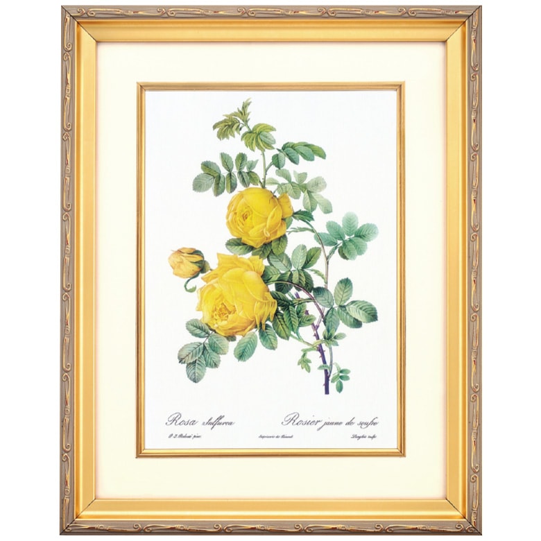 『ロサ スルフレア』(「バラ図譜」より) ルドゥーテ 立体複製名画 額装付 植物画 博物画 19世紀 国立自然史博物館(パリ) インテリア 絵画