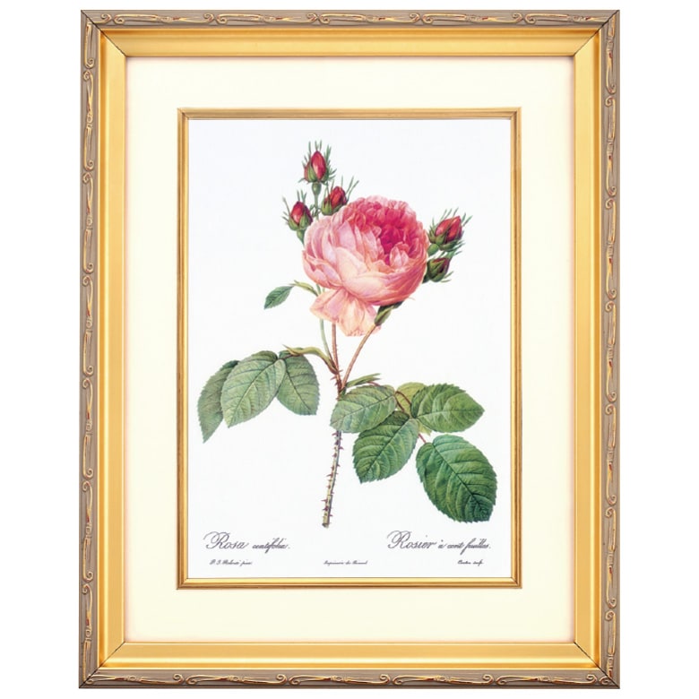 『ロサ センティフォリア』(「バラ図譜」より) ルドゥーテ 立体複製名画 額装付 植物画 博物画 19世紀 国立自然史博物館(パリ) インテリア 絵画