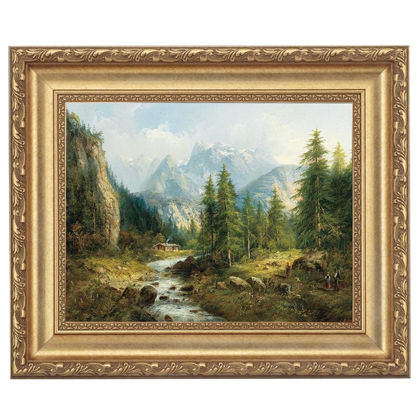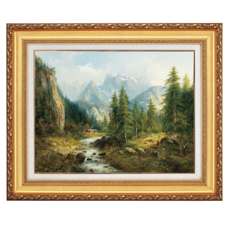 『山の風景』 エドゥアルド・ベーム 10号 立体複製名画 額装付 写実主義 19世紀 インテリア 絵画