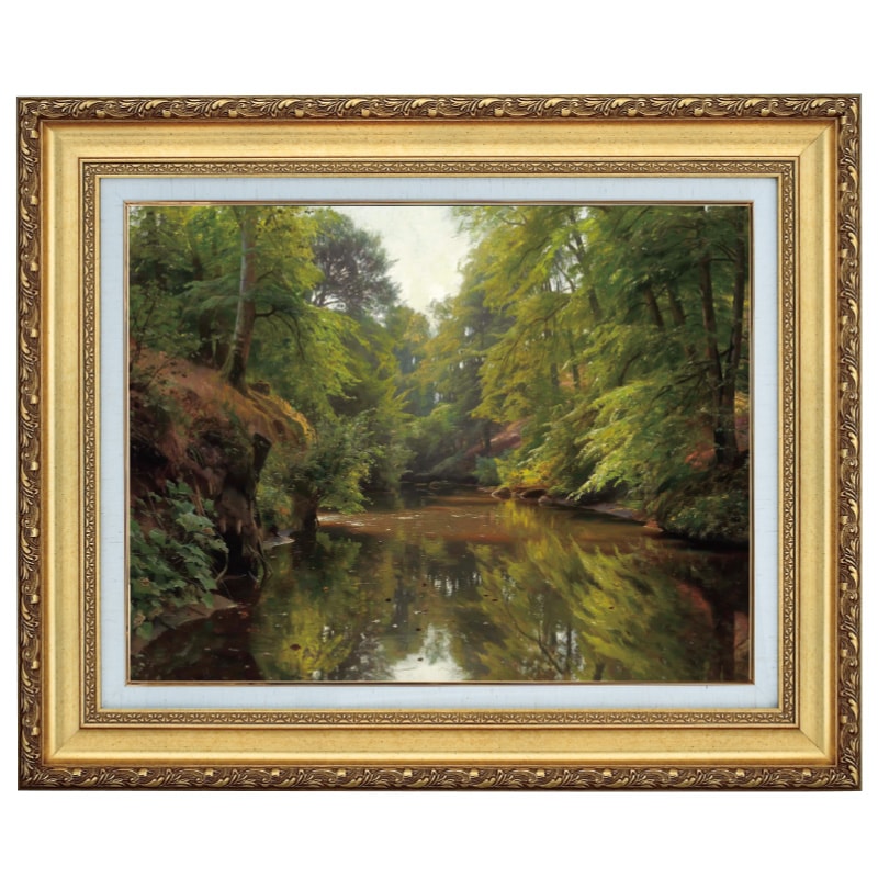 『森と川の風景』 ペダー・マーク・マンステッド 10号 立体複製名画 額装付 写実主義 19世紀 インテリア 絵画