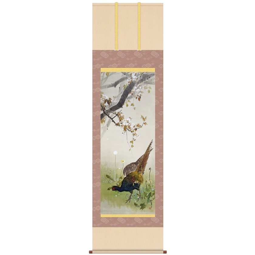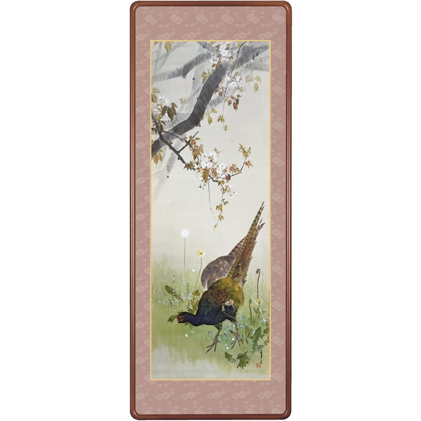 渡辺省亭『十二ケ月花鳥画』3月 桜下雉子 掛軸【ポイント5%還元中】