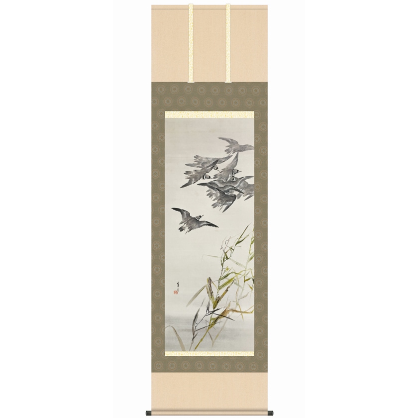 渡辺省亭『十二ケ月花鳥画』11月 蘆に千鳥 掛軸【ポイント5%還元中】