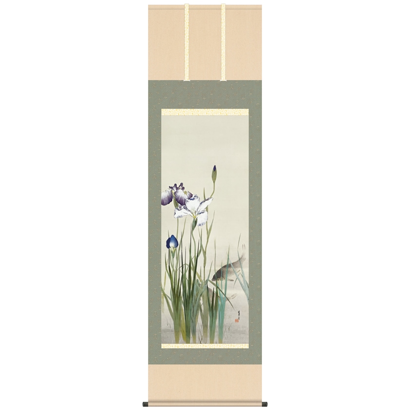 渡辺省亭『十二ケ月花鳥画』5月 花菖蒲に鯉 掛軸【ポイント5%還元中】