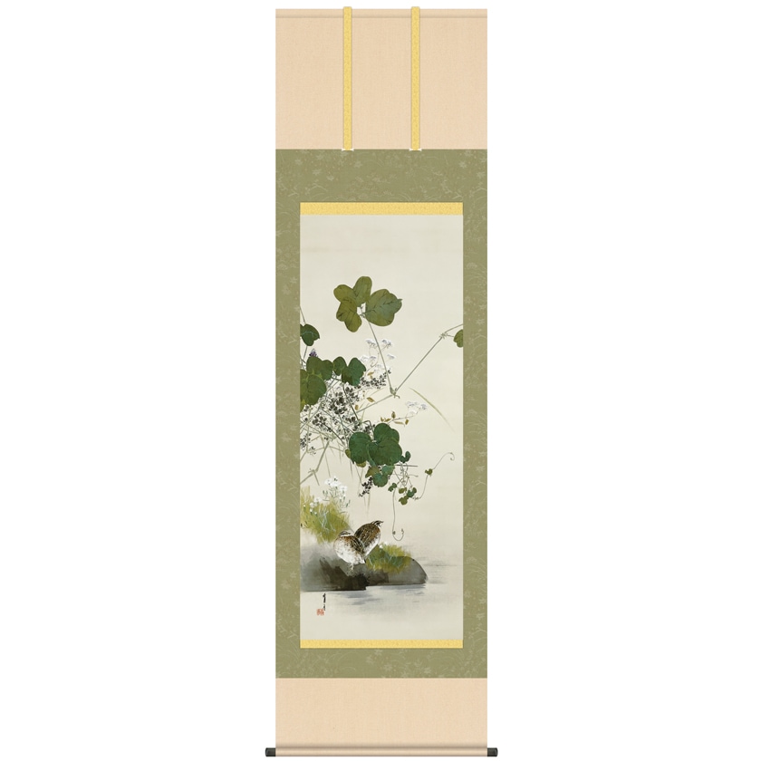 渡辺省亭『十二ケ月花鳥画』8月 秋草に鶉 掛軸【ポイント5%還元中】
