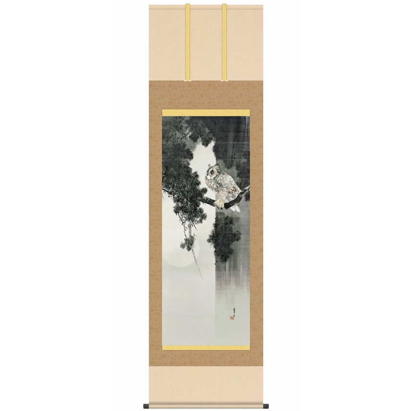 渡辺省亭『十二ケ月花鳥画』9月 杉にみみつく 掛軸【ポイント5%還元中】