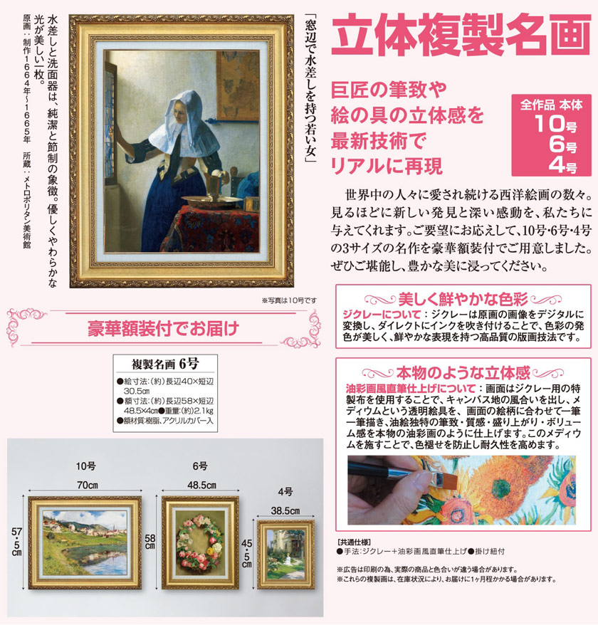 『水差しを持つ女』 ヨハネス・フェルメール 10号 立体複製名画 額装付 【ポイント5%還元中】 写実主義 バロック 17世紀 メトロポリタン美術館